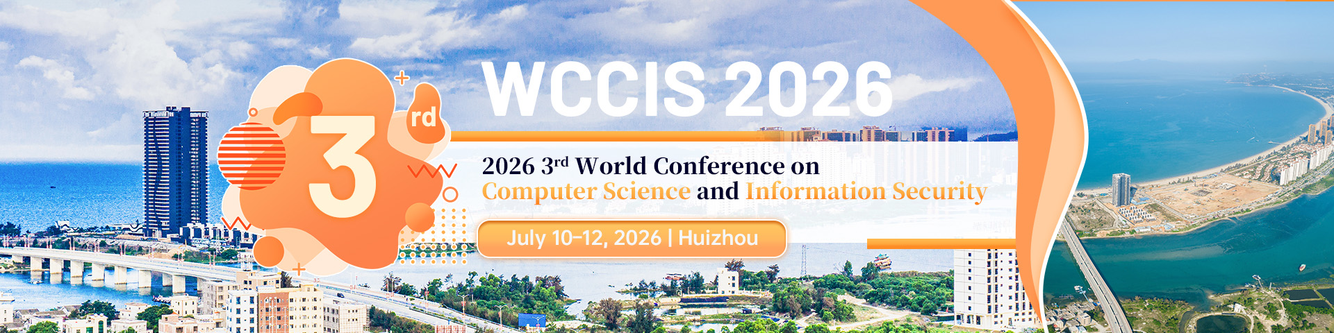 The 2026 3rd World Conference on Computer Science and Information Security (WCCIS 2026) will beheld on July 10–12, 2026 in Huizhou, China. The conference aims to provide a platform for experts, scholars, engineers, technologists, researchers and developers in computer and information security to share scientific research results and cutting-edge technologies, learn about academic development trends, broaden research ideas, strengthen academic research and discussion, and promote cooperation in industrialisation of academic achievements. The conference invites experts and scholars from domestic and foreign universities, scientific research institutions, business people and other related personnel to participate in the conference and exchange ideas.
